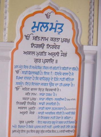It is said that these were one of the first words spoken by Guru Nanak Devji, the first Sikh Guru, when he realized the oneness with the Divine Light. Guru Granth Sahib, the Sikh Holy Book and Japji Sahib, the morning prayer begin with the Mool Mantra. Most Sikh scriptures are poems but there are a few intense nuggets of wisdom or mantras that can be easily remembered.  All Sikhs are first taught to learn, understand and live the Mool Mantra. This photograph taken at Gurudwara Nanakana Sahib, birth place of Guru Nanak Devji, talks about a very practical and temporal interpretation of the Mool Mantra on how we can live our lives.